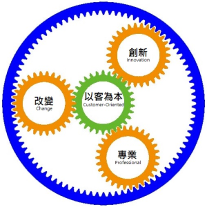 以「圓心齒輪」為核心,外圈三大齒輪共同帶動企業運轉。
